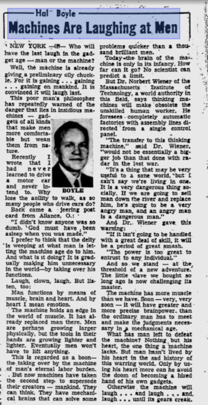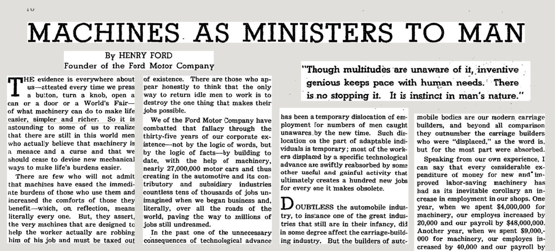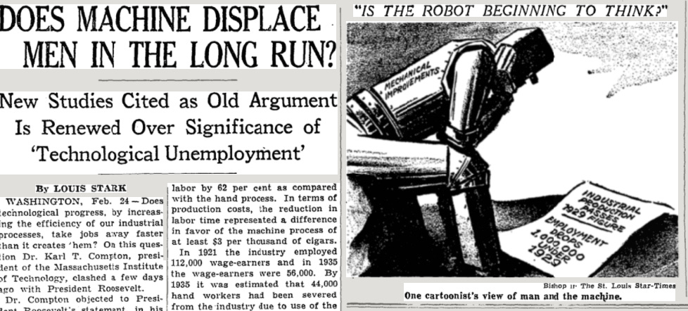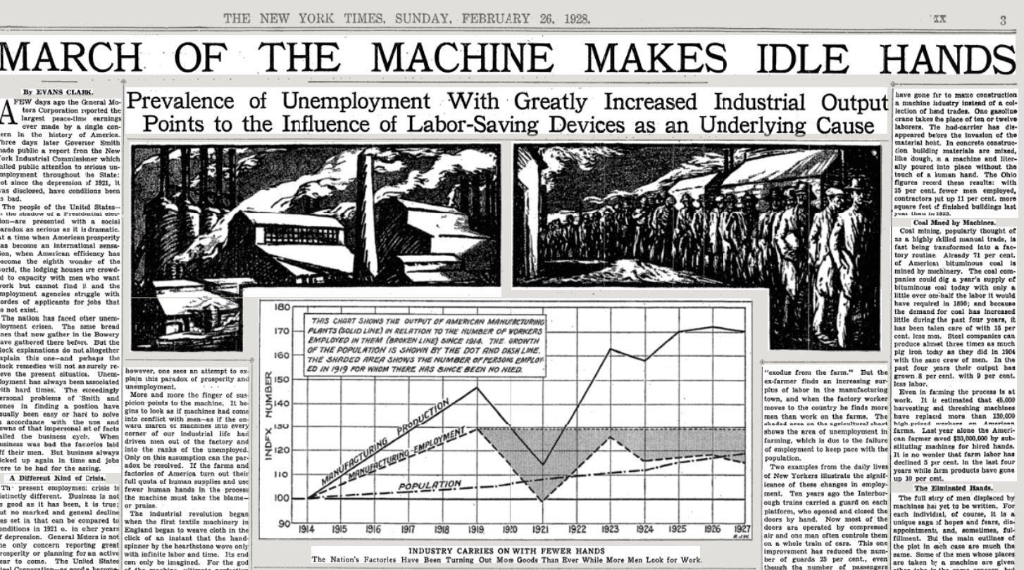 There is still the pesky little problem of jobs, though. That old wives’ tale of automation and job loss. I would pay for a history or social science student to work on the following Master’s or Doctoral thesis - Go back to the early days of James Watt and the Industrial Revolution, and dig up newspaper articles from that era to this. About two hundred years of op-ed columns. Analyze them, and give me the major narratives that were constructed during each era, placing them, of course, in the context of the socio-political and cultural events of the day. I think it would be a very insightful thesis. But since I neither have the money nor institutional credibility, I dived into the internet and searched for what history had in store for this article -